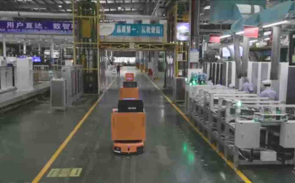 为车载冰箱物流配送打造的智能解决方案,,,,包含产中物流通过潜伏举升AMR搬运至线边,,产后成品物流智能仓储,,,流程包含产中物流智能齐套入库,,线边安灯叫料AMR智能配送至线边,,成品入库、、、、出库,,,通过无人堆高车机器人,,,智能仓储管理替代人工作业管理,,,实现更高存储、、、更高效率、、、、更具柔性化的解决方案。。
